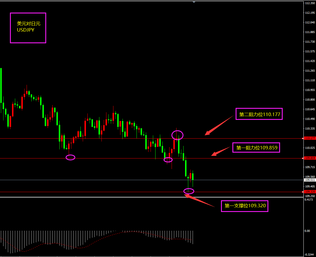 策略分析:第二阻力位轻仓附近看空。如有大阳线突破第二阻力位则转为观望。
