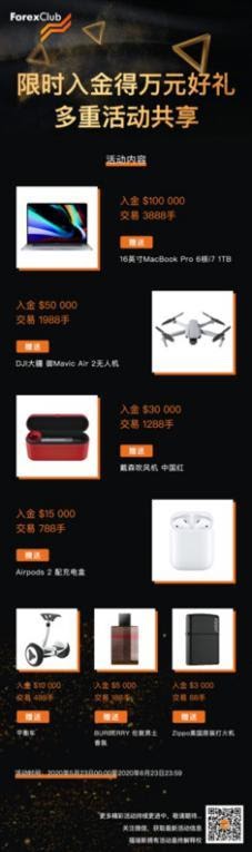 活动规则及礼品:活动期间,入金并完成相应交易手数即可活动相对应的实物豪礼,具体如下:
