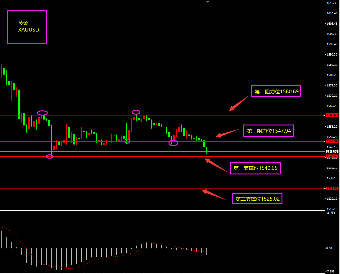 策略分析:第一、二支撑位附近轻仓看多。如有大阴线跌破第二支撑位则转为观望。