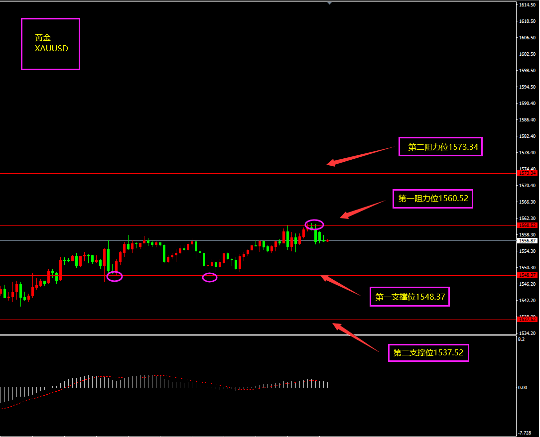 关注点:黄金1560阻力位是否有大阳线突破?