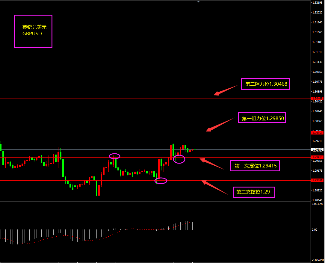 技术点评:天图欧元结束6连阴,昨日底部收小阳线,暗示底部多头入场,但底部多头力度相对较弱,日内实体部分若不在创新低,则将形成一波反弹。小时图欧元MACD再次在底部形成底背离,期间长下影线之后有大阳线拉升,行情逐渐反转,日内保持以逢低看多为主。