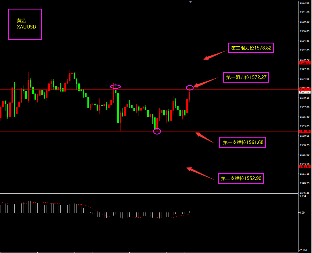 策略分析:第一、二支撑位附近轻仓看多。第二阻力位附近轻仓看空。