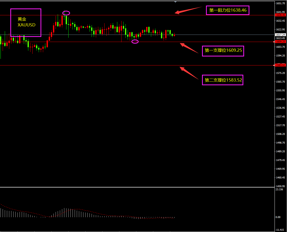 策略分析:第一支撑位附近轻仓看多,如有大阴线跌破第一支撑位则转为观望。